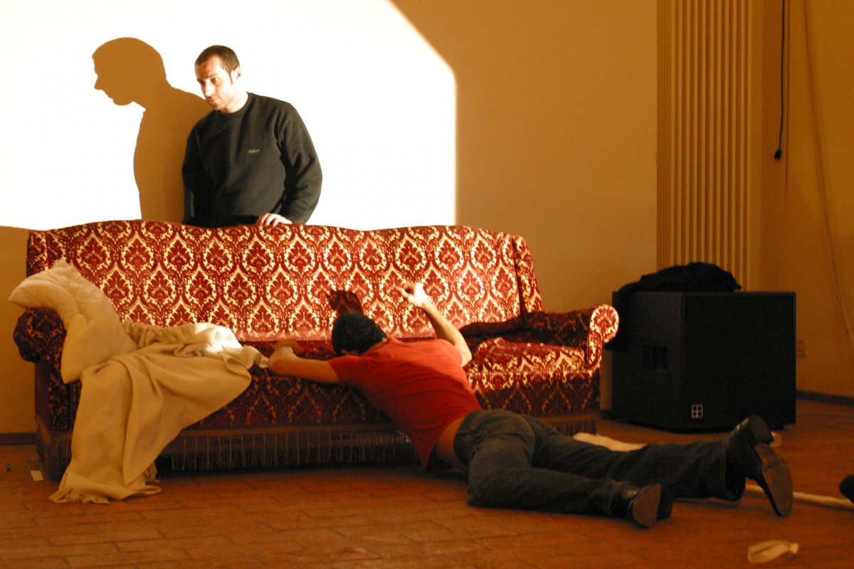 Giovedi 20 marzo 2005, per la serie Living Room, Raum presenta MK con la performance Divano Occidentale, preceduta dal video dell’artista visivo Luca Trevisani La costellazione squilibrata.