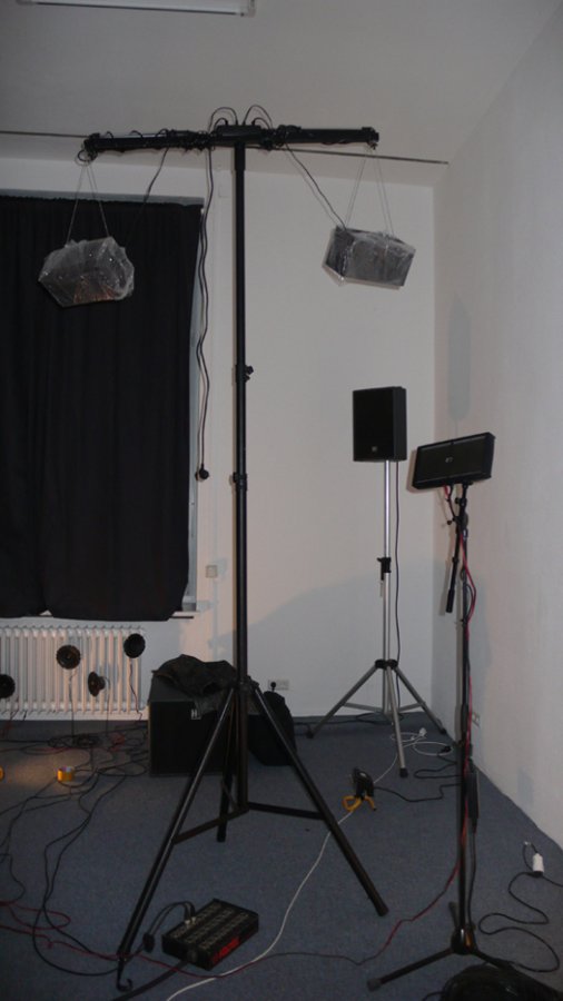 In Berlin on the 20th October a new version of Phonorama entitled ambiente di elettronica viva, will be presented in the exhibition spaces of the Galerie Mario Mazzoli with a sonic live electronic environment, where the instruments and sound devices of 19 musicians (a mixed crew from Italy and Berlin) are remote-conducted.