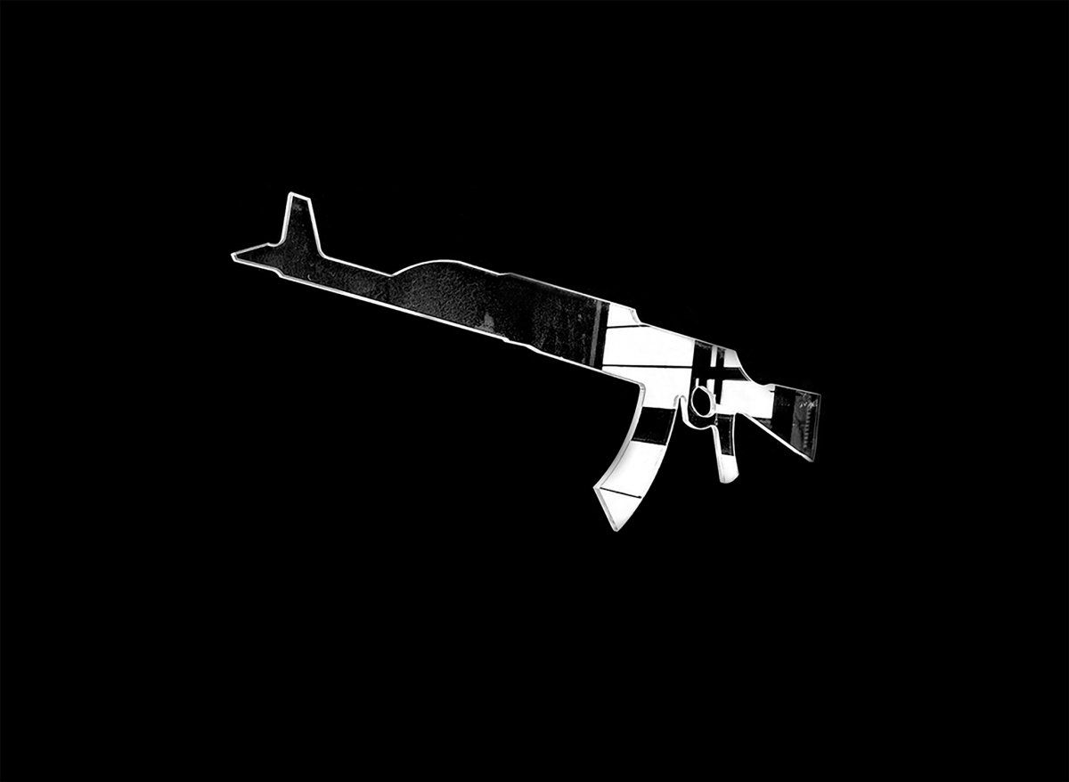 AFELIO is based on a research on the military context and its rituals, focusing on the complex of perfected actions carried out on the guard post of the Arlington National Cemetery, Virgina (USA) for the Changing of the Guard ceremony. With this work, Gaia De Megni investigates the civic source that portrays the use of the weapon as a symbol, focusing on its fetishization in an action that redirects its lethality for those who wield it. AFELIO is a performative act between two dancers, facing each other and maneuvering in their hands a glass sculpture in the shape of a rifle M16A2 model, one of the most precise weapons used by the US army and employed in the Vietnam War, but today relegated to a mere object of military etiquette, embodying 'the myth' of the weapon as an element of choreography. In the action, the two performers reproduce the gestural score (silent drill) of the inspection and changing of the guard, alternating the use of the weapon in a continuous implementation. The precise moves of the body and the stylized acrobatics of the fragile weapon, adapted by the choreographer Gloria Dorliguzzo, mark a gesture that focuses on the choreographic exchange between the two figures, generating an image akin to the original military ceremony and recalling the rapid virtuosity of break-dance or dance moves such as the moonwalk where the movements give the illusion of the absence of gravity.