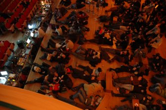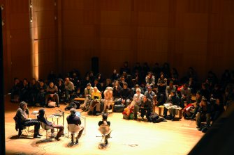 INTERNATIONAL LIVE MEDIA FLOOR: Bas van Koolwijk/Christian Toonk - "RGB" (NL), Patrik Fontana/Emeric Aelters/Pierre Yves Fave -"Grenze" (F), Kristen_ /Mzweig - "Lyder" (D), Greg Davis/Sébastien Roux/Mattia Casalegno - "Grain Scape" (USA-F-I), Phil Niblock/Thomas Ankersmit (USA-NL), Vincent Epplay/Antoine Schmitt - "Display Pixel" (F), Anthony Pateras/Robin Fox (Australia), [sic]/triPhaze - "Organic Debris" (Can-D), Jan Jelinek/Karl Kliem - "Sound and image" (D)