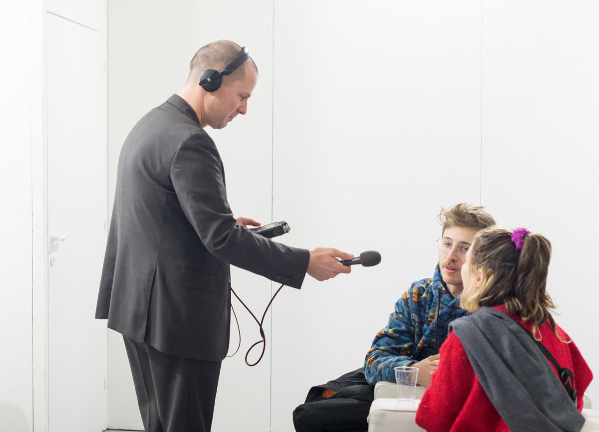 A poetic reportage drawing on an expanding sound archive. Microphone in hand, Bosetti collects and renders a body of vocal fragments recorded by moving among the fleeting mass of voices that populate the Fair 'situation': visitors, exhibitors, technicians, artists. His sound performances then infiltrate the interstices of the Talk programme, in the form of flash monologues in which the artist’s voice mingles with the recorded voices. A series of surreal spoken rings, where questions and answers shade each other.