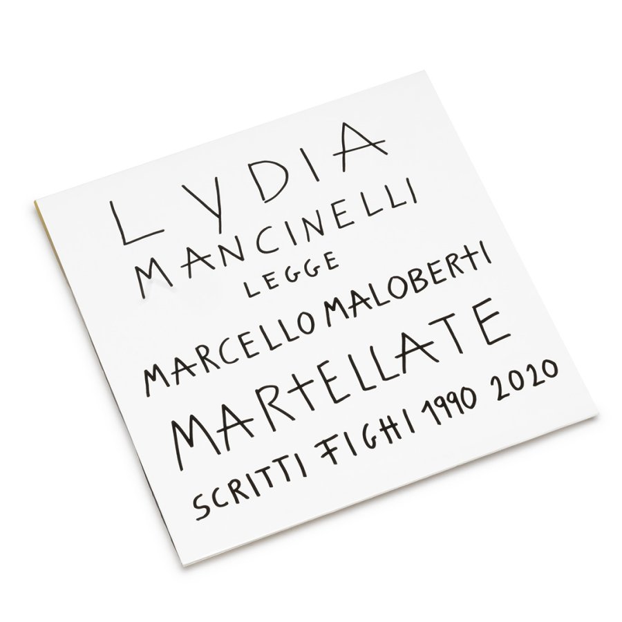 MARTELLATE. SCRITTI FIGHI 1990-2020. LYDIA MANCINELLI LEGGE MARCELLO MALOBERTI è la seconda uscita di XONG collection - dischi d'artista. L'attrice Lydia Mancinelli, compagna di scena e di vita di Carmelo Bene, legge “a voce scritta” la raccolta di frammenti impulsivi dell’artista visivo Marcello Maloberti. L’uscita è su vinile bianco, in edizione limitata e numerata, assieme a 30 pezzi unici per la serie collector’s editions, con le copertine realizzate a mano da Marcello Maloberti.