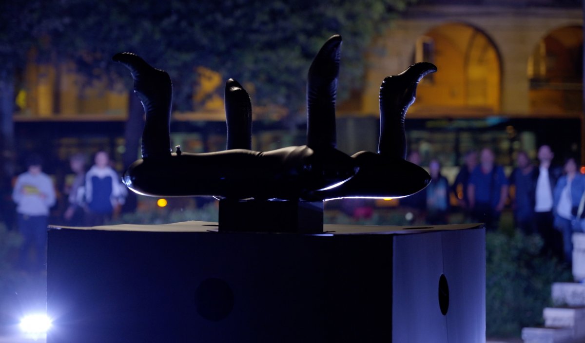 WAT - intuitions about the world waiting for them to become a complete construction is a happening, a moment of transient activation and temporary redefinition of a public space. Conceived by Xing and mk, Kinkaleri, Cristina Kristal Rizzo, Lucia Amara & guests (everyone renamed for the occasion as m.c.s.f.m.d.s.c.k.r.g.m.l.a.m.m.d.g.), all protagonists of the contemporary Italian choreographic and performative scene. A participatory project that offers itself to the timeliness of intervention; a temporary centre redefined by a flow and announced by the ephemeral installation of two new works of public art, W (upside down versions of the signs placed at the entrance to the subway), that allude to embarking to another dimension. WAT draws in the transient experience of both the artists and audience an imaginary underground line beneath the city, camouflaged in the urban space to the point of seeming a plausible presence.