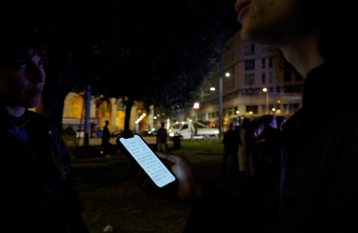 "We embarked, moored, set sail, landed entangled on a stretch of water in a crucial point of the civic conduit. If we want to stay here, at the water's edge, we have to pretend we have words without ideas and invent a secret, a legend that passes between us and passers-by, from hand to hand. And to make the facts unrecognizable we have developed synthetic strategies for evaporation: spitting out of crevices slips of papers with sentences useful for survival; whispering something very close to the truth but only because it is a breath of literature; drop all the double [W]; act and disrupt the completed construction. We lack to drink and eat. Someone needs to know that we are here. Every signal is possible and imaginable. We need the address of a place that is only a vanishing point. Will the geolocation detect the surface of the water? Tell me the house number and the postal code, please. We have been ready for some time to provide the data of this new domiciliation. For now, this is a mere evacuation drill. At the right moment we have at our disposal a hot-air balloon. It should be read but not said. Thus, the legend turns into legend. We avoid copyright issues and spend less. The night is long. We are on the water. We surface. We buoy. We float. We emerge. At the edge of the water."