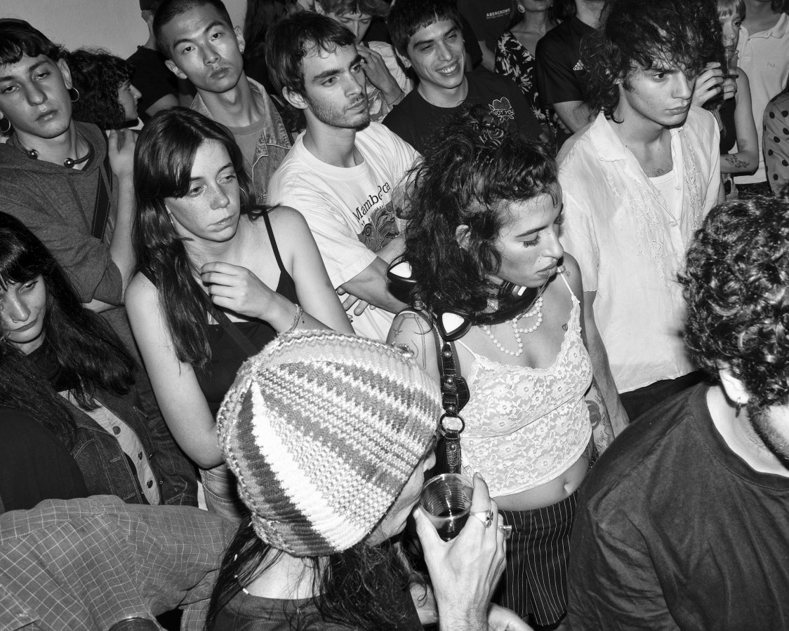 MUSICA ANALFABETA (Illiterate Music) at Raum was a live performance, a programmatic action that implemented Jacopo Benassi’s performative experimentation as a tool to widen his photographic practice (in the past two years he has created new situations of sound and live shooting, centered on a self-ostensive gesture). MUSICA ANALFABETA stems precisely from the urge to probe the liveness of the event and the audience, galvanizing its presence, and phisycally exposing himself to it. With the involvement of the sound-makers Daniela Cattivelli and Pasquale Savignano, Benassi transformed Raum's spaces into a crowded arena, where the audience's body was acted upon and, in turn, acted out. A storm of flashes and sounds, hurled by cameras arranged in the space and trained by the artist, but also entrusted to the direct usage of the participants. The performance was directed by a trumpet/camera, which moved with Benassi, yet played and photographed autonomously like an organ endowed with a life of its own, and by the interventions of the invited musicians with live electronics and other devices, conditioned by a ‘score’ of that collective body, fragmented and incidental.