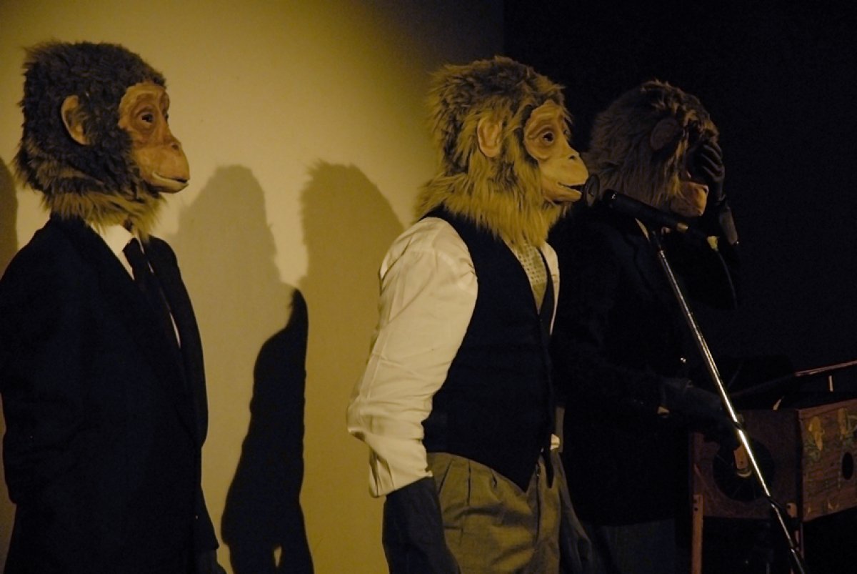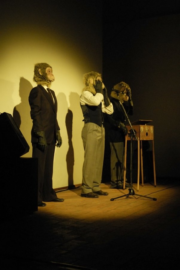 Pan Troglodytes è un’ installazione, performance audio visuale. E’ l’antropomorfizzazione di un artista, l’animalizzazione di un musicista. Come l’animale dall’alto di un palcoscenico si trova ad essere uomo, così il performer torna ad essere animale di fronte al pubblico.
