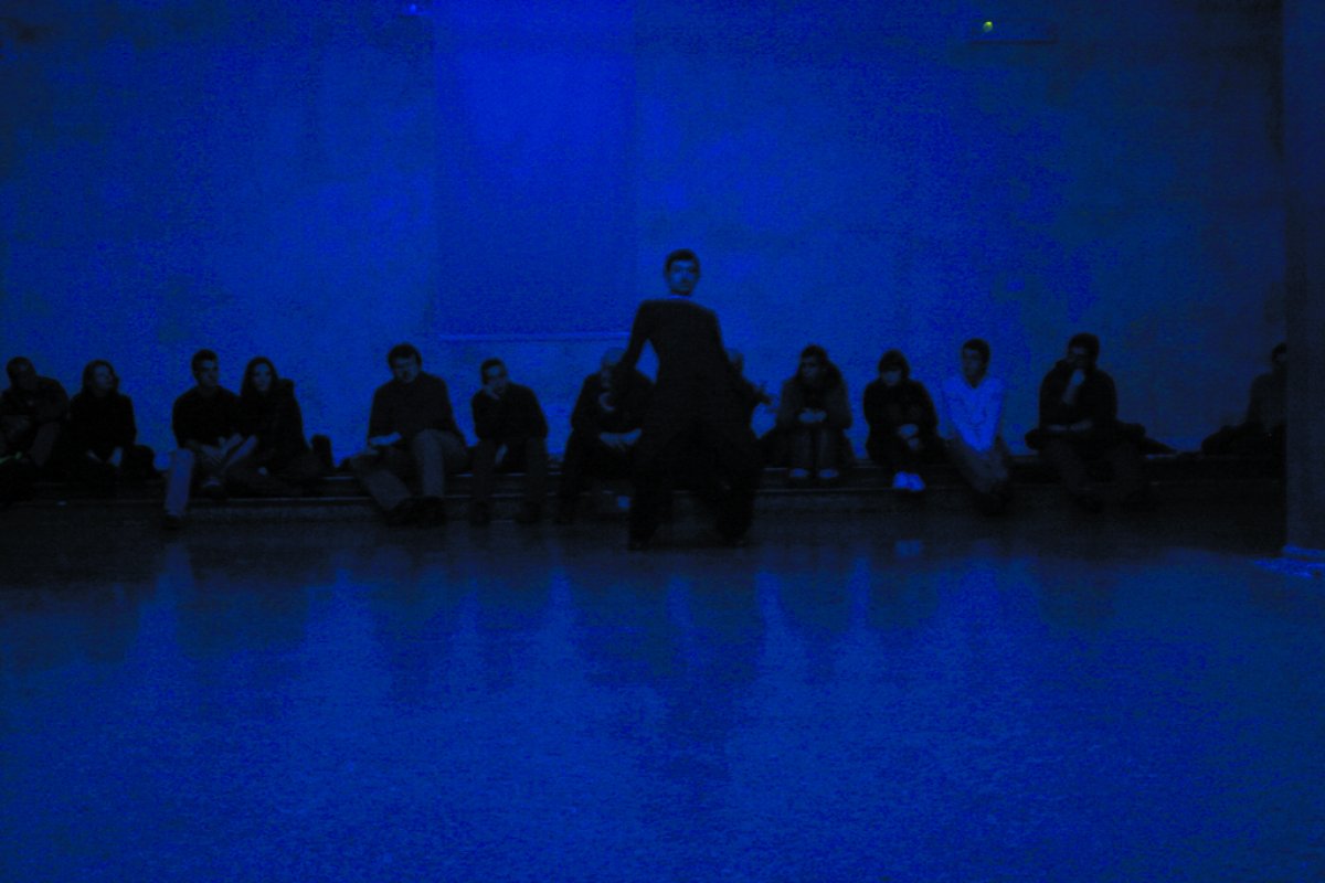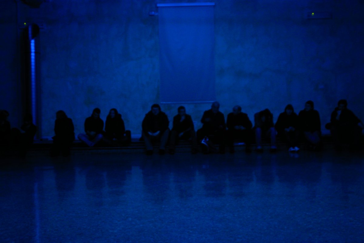 'For Netmage 07, Kinkaleri will search the city of Bologna for at least 10 bodies, men and women, prepared to go along with a deep regression into impromptu primitive expression. The event, taking place from 25 to 27 January 2007 in a large hall of the Palazzo Re Enzo, will appear as a long animation where it's necessary to imagine the power of the dynamics of time as a continuous thought through images of pathos. A pneumatic movement of figures intensified by the act of seeing.