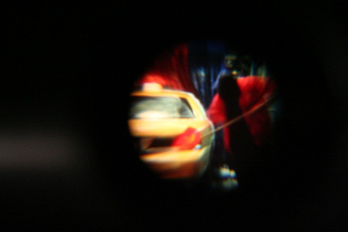 Un taxi entra, attraversa, ed esce dall’autolavaggio.