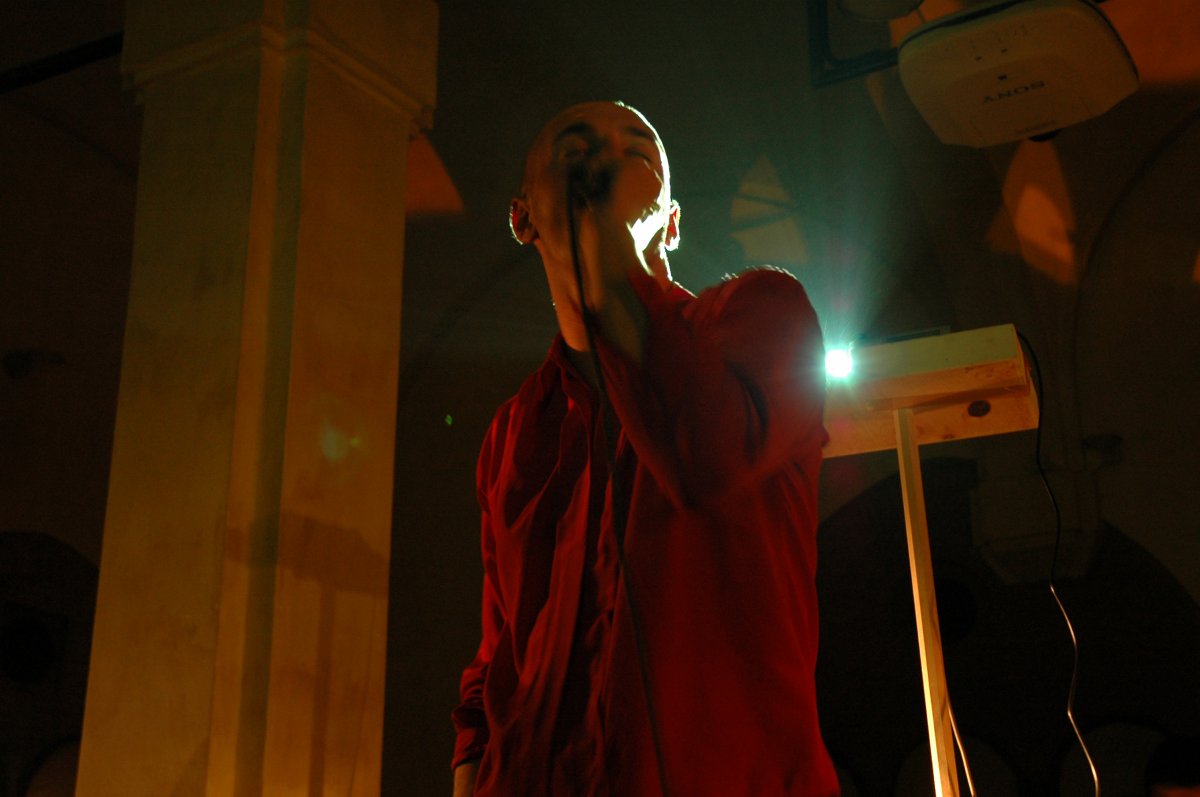 Nico Vascellari si esibisce insieme a With Love in una performance a partire dalla re-installazione del progetto modulare A Great Circle. Alla disseminazione negli spazi di Palazzo Re Enzo delle sue parti visive e sonore (in forma di installazione video e allestimento nella grande sala a colonne, con l’audio scorporato e diffuso in ambienti esterni e di passaggio), corrisponde pertanto una performance alla ricerca di un feedback costante con il pubblico, che integra inoltre ospiti ed ulteriori tracce audio degli artisti in mostra. L’obiettivo è reinterpretare, stravolgendola, la tradizionale idea di live media come interazione diretta di suono ed immagini, a favore di un evento in cui la proiezione video diventa motore visivo guizzante negli spazi e dove la componente performativa ridisegna i confini dell’ambiente stesso.