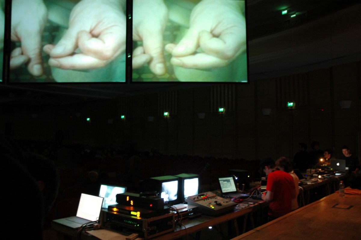 This project is presented by the duo of Jen Morris ([sic]), sounds, and Marek Brandt (triPhaze), images. It starts from a series of images of everyday acts (shaving, combing hair, scratching..) linked to intimacy and the body understood as a generator of flow, growth and waste. A live visual "streaming" which is immediately interpreted by the sonic comments delicately transcribed by the young Canadian musician.