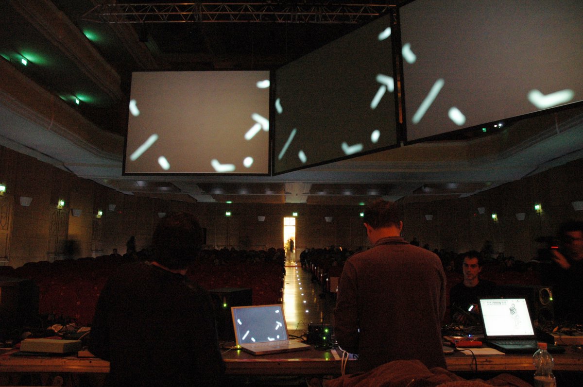 Display Pixel is a meeting/comparison on the exploration of the sound/image relationship, between the sonic research of Vincent Epplay and the work of Antoine Schmitt on graphic algorithms. A live performance where the images react, interact, memorize and act out the electro-acoustic events created by Epplay.