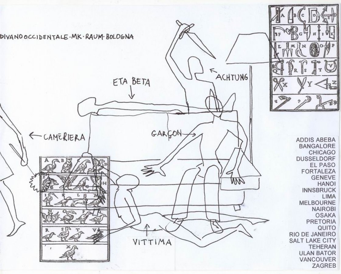 Divano Occidentale, evento concepito per gli spazi di Raum a cura di MK, è una 'seduta coreografica' . Oltre il nucleo stabile della compagnia, la performance incorpora contributi e interventi di altri artisti attivi a Bologna (il performer Fabrizio Favale e il duo CANE, lo stesso Luca Trevisani con altre presenze, gli Starfuckers per il suono con le tracce audio di "infinitive sessions"). Cura la regia il coreografo Michele Di Stefano.
