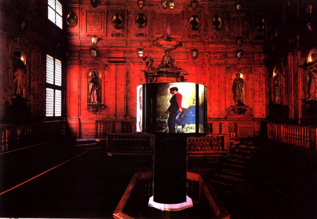 Nel tragitto iniziato con le sue prime installazioni multimediali degli anni ’60 e che ha poi attraversato la vasta area della comunicazioni e degli eventi di immagine progettati per le grandi organizzazioni industriali, Umberto Bignardi ‘ritorna’ a Bologna , la città in cui è nato, in compagnia di Alvin Curran, il compositore americano protagonista di un originalissimo percorso musicale, da Musica Elettonica Viva con Rzewski e Steve Lacy, a Roma negli anni ’60, al gran numero di composizioni e installazioni sonore degli ultimi anni. In Ritorno alla città, Bignardi e Curran incontrano, incrociando le rispettive esperienze, cinque musicisti della nuova generazione formatisi nell’ambiente bolognese. Il senso dell’ evento sta in questa condizione di comunicazione e continuità transepocale, sul filo di una successione aperta di sequenze formali, nel condiviso avvicinamento a una soluzione al problema di dare forma al tempo.Una condizione del fare in cui lo scenario oggettivo–soggettivo della città gioca un ruolo non casuale. La performance ha luogo in due luoghi emblematici di Bologna: la sala bianca del Linke il Teatro Anatomico dell’Archiginnasio, la sede dell’antica università. Al Link è allestita l’installazione Implicor, uno spazio delimitato da lastre di specchi-schermi attraverso le quali filtrano le videoproiezioni. Al centro del Teatro Anatomico, sul tavolo di marmo che veniva usato per sezionare i corpi, è collocato il Rotor un cilindro-schermo rotante sul quale sono anche proiettate le immagini video. Al Link agiscono, in quanto compositori, esecutori ed attori,Olivia Bignardi, Daniela Cattivelli, e Stefano Zorzanello; al Teatro Anatomico Paolo Angeli e Pierangelo Galantino. In entrambe i luoghi le performance dei musicisti sono riprese dalle telecamere e proiettate nelle installazioni. Alle riprese in tempo realefanno da contrappunto le proiezioni dei quattro capitoli video (Il corpo costruito, Il lavoro dell’artista, Ritorno alla città, L’immagine dell’origine) di Bignardi, musicati da Alvin Curran. La sala del Link e il Teatro Anatomico sono collegati via radio in tempo reale, la percezione unificata delle due fonti sonore annulla la distanza fisica delle performance. La sequenza dei brani musicali eseguiti alternativamente nelle due sedi e inframezzati dai capitoli video costituisce la struttura temporale dell’evento. Ciò che avviene al Teatro Anatomico è visibile al Link tramite il medium televisivo.