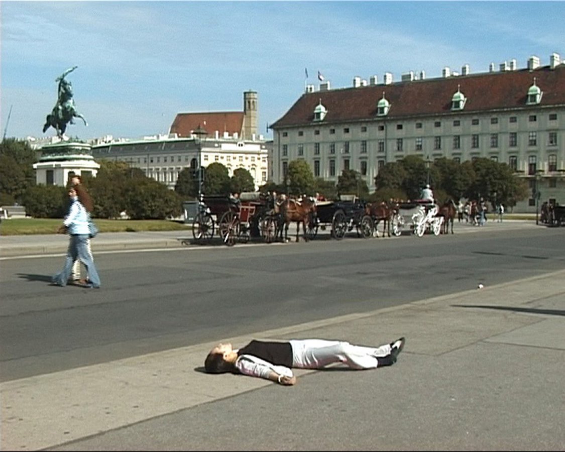 Ogni soggetto è sullo stesso piano: chi guarda si vede guardare e la città diventa l’identificazione della rappresentazione della città contemporanea d’occidente. Tutto è ordinario e ovvio e in questo ci si può scambiare di posto; non è l’essere visti che permette la morte ma la morte dichiara la visione nella connessione degli sguardi di chi guarda e chi si guardare guardando chi guarda e poi cade, in un gesto che dall’infanzia non possiamo più compiere se non protetti dalla rappresentazione.