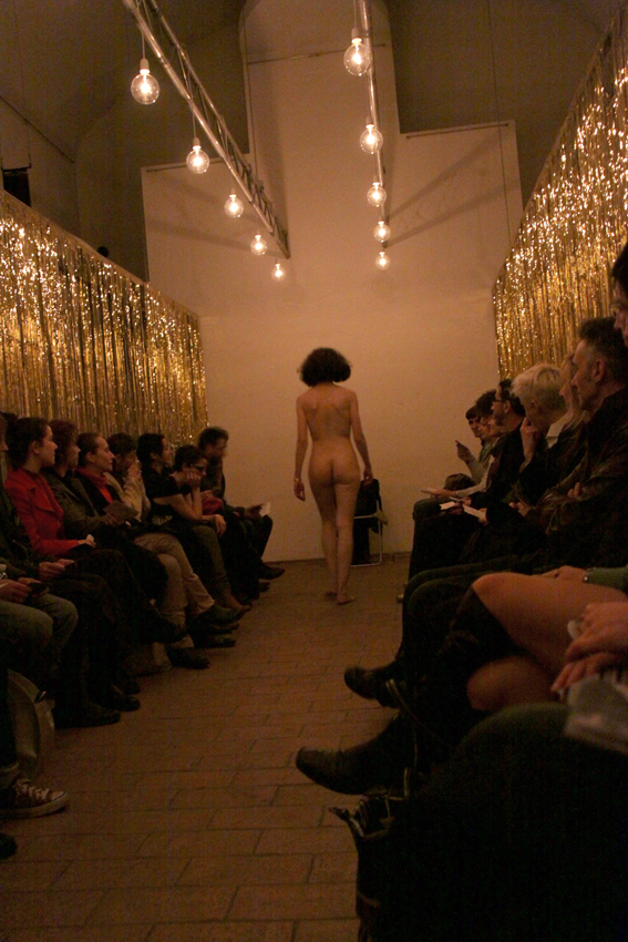 One piece has a very keen power-balance between spectators and performer. The question is: what is there to be gained or to be seen? Playing with the real experience and the abstraction of writing, Mladenovic breaks up borders and stages the paradox. She makes you extremely aware of the fact that you are (active as) a spectator, but the formality of the construction prevents any action from becoming obscene. There is something almost mesmerizing about the staccato tone of voice in which Mladenovic speaks, not omitting any possibly relevant detail, without however becoming pathetic or self-explanatory. This performance displays a bizarre kind of energy where everybody is riveted to an enigma, which, utterly, proves to be not only the enigma of the performer, but yours as well. The more the performer speaks, the less you seem to know about this person. The utter 'openness' only seems to make the person in front of you more distant, less easy to understand.