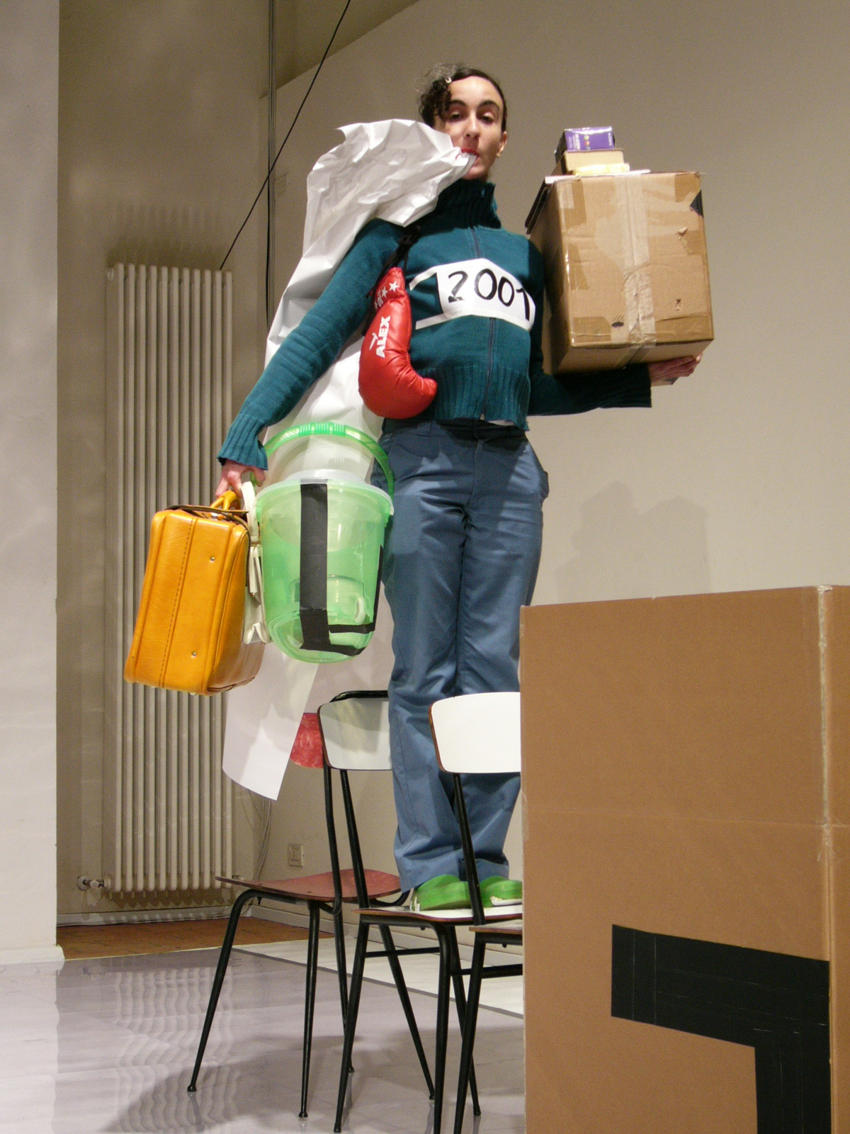 A Space Odyssey (2002) parte da una riflessione sui riferimenti visivi, i modelli mentali e i meccanismi che abitualmente utilizziamo per riconoscere delle nuove immagini. Manipolando oggetti quotidiani modificati, Cuqui Jerez opera sulla scena una strutturazione e destrutturazione spaziale, temporale e contestuale. In questa doppia performance ogni riferimento viene letteralmente invertito, manipolato, disturbato o distorto per ricreare un nuovo ordine del reale. Proviamo un certo disturbo, confusione, difficoltà e piacere, perdita e ritrovamento… siamo nel momento prima del riconoscimento, quando la realtà non è ancora al 'posto giusto'.