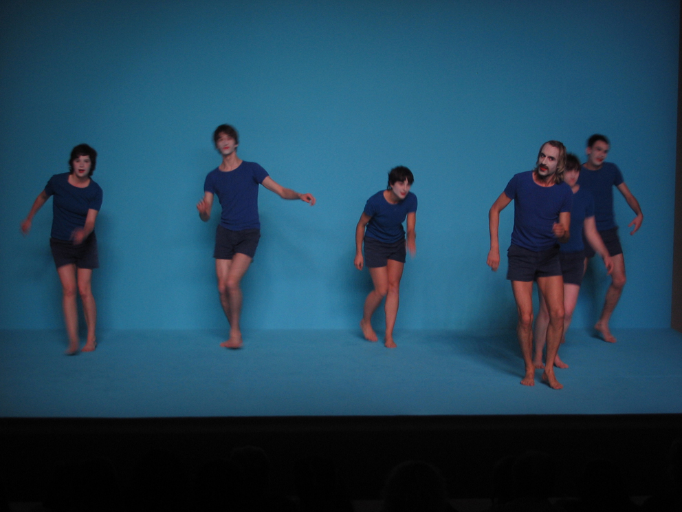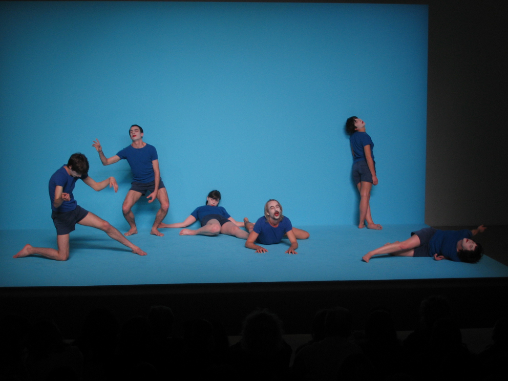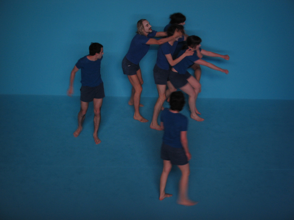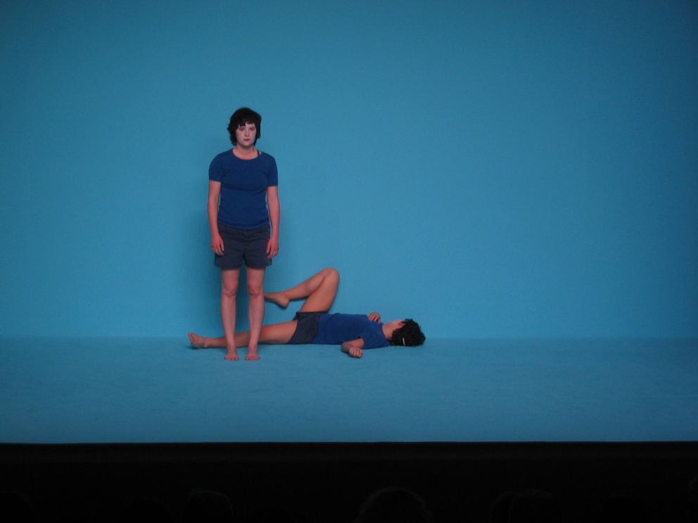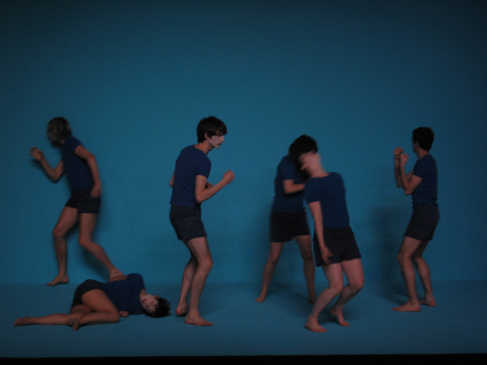 After the non-dance, the possibilities of mimic art remained as virgin terrain, yet unexplored in recent years. Barred from the encumbrance of explanation and narrative progression, Touzè and Laabissi have made experiments on immersion and abandonment of the figure. In the frontal, apparently classical purview of Love, images are amplified and over-exposed according to a bizarre form of dramaturgy (the 'tactile gaze'). Every scene is a tableau vivant where images are constructed and disintegrated instantly, letting us believe for only a moment that a narrative is being formed. Love works at the same time on a principle of exposition and risk of disappearance, on a dimension of great vulnerability of the performers. The audience watches an over-expressive representation not far from mime, sometimes so illustrative to appear regressive. The basic elements are simple: it's the activity of vision and gaze that complicates it, self-propagating throughout the body and producing a confusing excess of meaning. But Love, theatre of archetypes and possibilities, played out on a flat blue surface, makes us feel strangely near these slightly bestial figures that give us no sign.