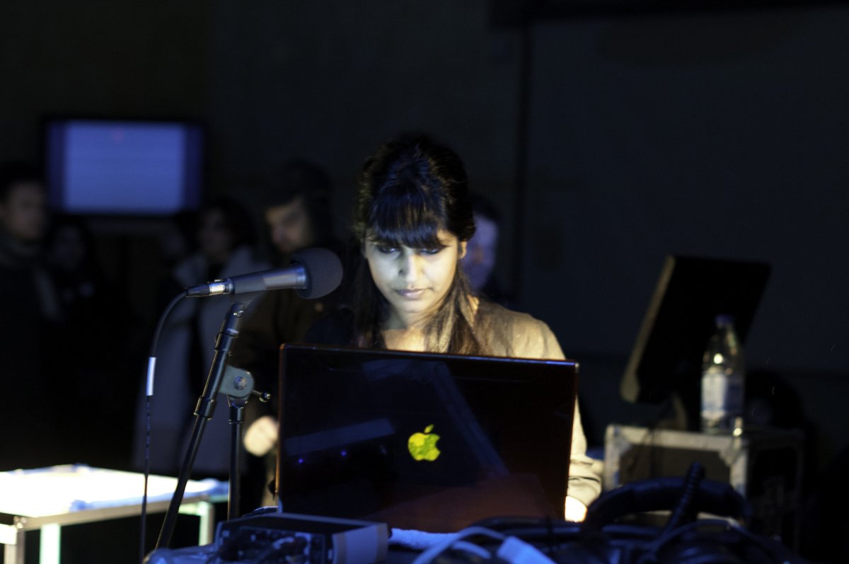 Lo sviluppo visivo di Tunneling, il progetto multi-disciplinare presentato a Netmage, si definisce attraverso un maniacale processo di taglio dei muri e scomposizione dello spazio che acoglie la performance, procedendo dall'interno all'esterno. I diversi strati parietali dell'edificio vengono lentamente rimessi alla luce, uno alla volta, fino a raggiungere la strada, lì fuori, nel tempo della notte. L'immagine viene costruita dal vivo perforando una piattaforma campione costituita dagli stessi materiali che compongono i muri dell'edificio ospitante; un software memorizza l'aspetto del singolo strato perforato, il green-screen ne ritaglia la figura elettronica. La narrazione sonora è costituita da una moltitudine di voci, prima sovrapposte migliaia di volte, poi lentamente sfoltita fino ad arrivare alla solitaria voce, reale, della performer Surabhi Saraf.