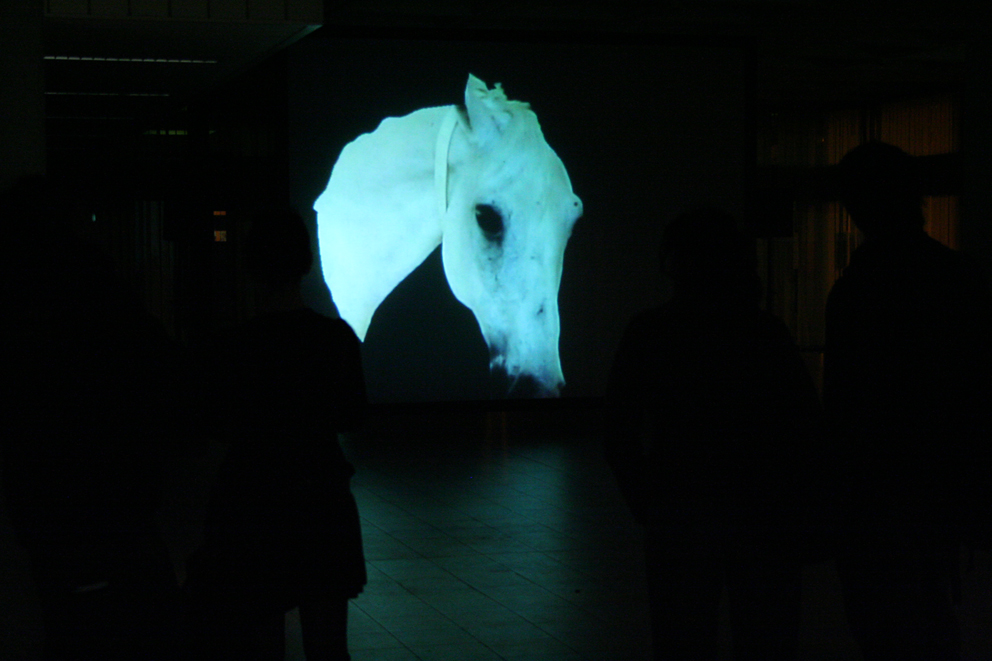 Superimpose the image of a horse, the outlines of a jockey, the concept of 'horse'. The animal's eye coincides with the position where we find ourselves waiting, deforming into a new figure in perspective before sliding into another. Holes In Between is a non-metric visual investigation between Picasso, digital prank and Gestalt. Supported by the asynchronous sonic aesthetics of Sinistri, the designers Donnachie and Simionato modulate an elegant flux of visual repetoire and controllers that bloc comprehension. Do the very organizing principles of image and sound lead to the process of thought?