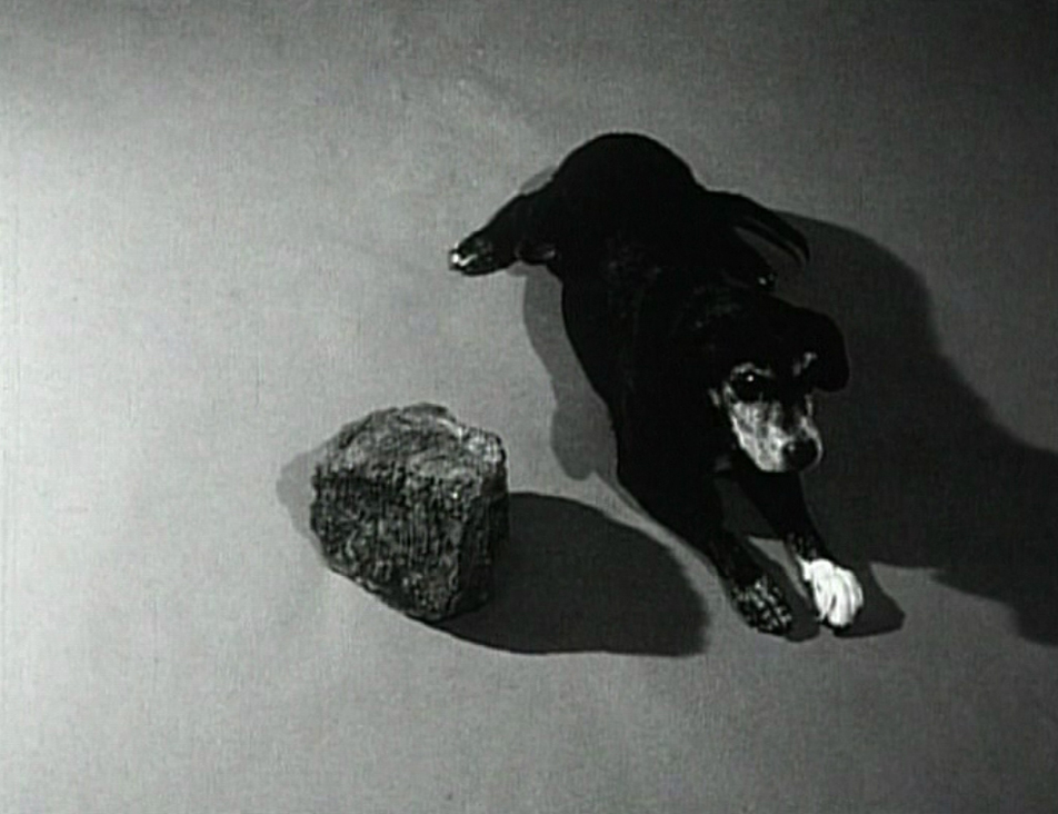 Title is definitely one of his more radical projects on the theme of syntax. A juxtaposition of extremely minimalist images following each other without hierarchy nor direction. Baldessari isolates and breaks up a classic film into its component parts. First the objects, the characters, the landscapes, then frames associating two shapes and finally the beginning of an action, of a dialogue. With Title, meta-cinematic object perfectly in tune with experimental 'structuralist' films, Baldessari shows the precise making and manipulation of meaning, the tricks of cinematic space-time.
