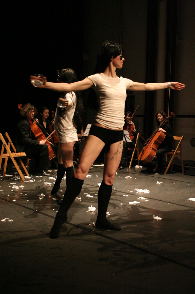 The performance for episodes XXXXXXXXXXXXXXXXX - a situation for dancing by dancer/performer Antonija Livingstone & Elizabeth Ward (who took over from Heather Kravas) is a project with an unstable format: 'choreographic conversations and agitated meditations' over a period of three days with heterogeneous guests as well as a variety of other figures. A stirring-up of remixable flows that the public is invited to follow in their variations, night by night. In this Fluxus style pas de deux the choreographic material and time become manipulated and put back in circulation through the sharing of the moment. A joyous political demonstration and reflection on identity in which a sort of pure freedom, eccentricity and life interweave. A Situation.