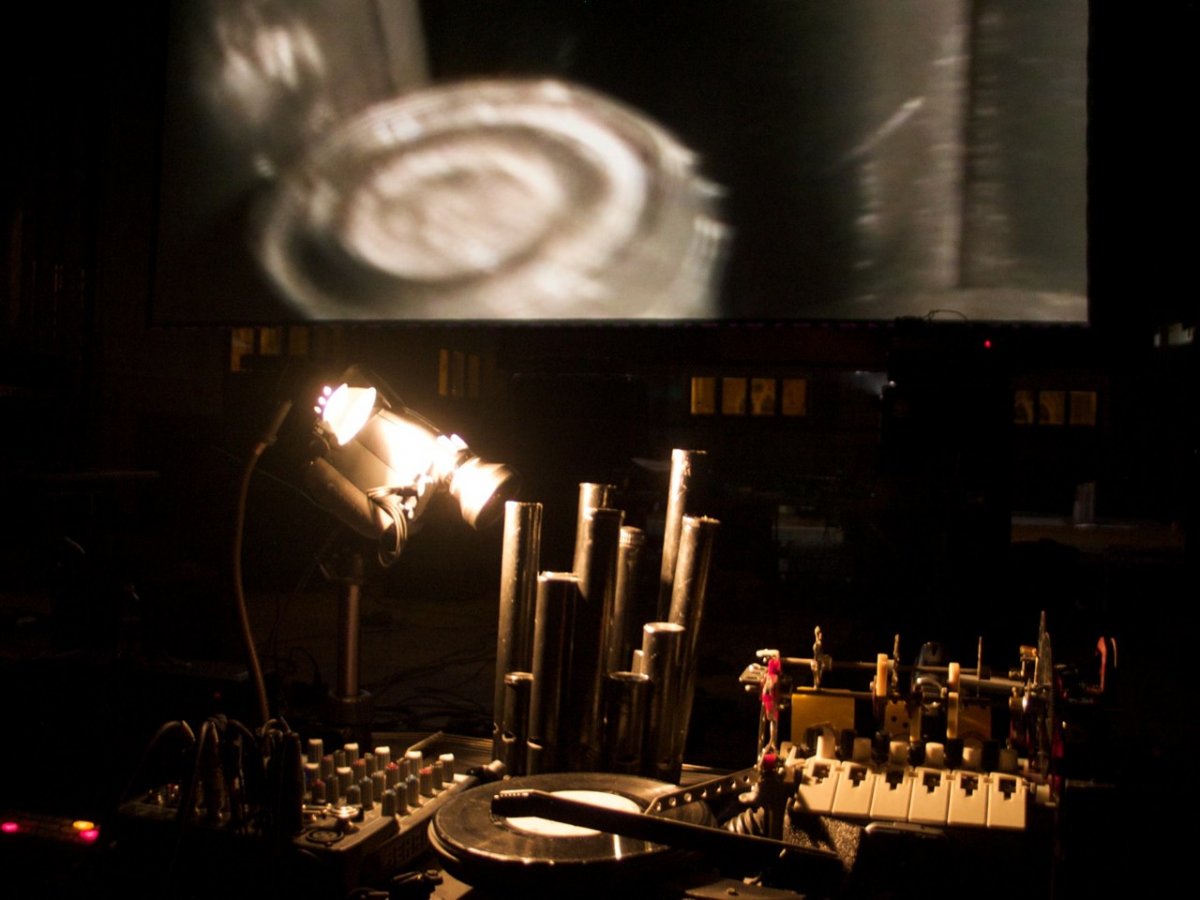 As a composition, Kinetic Syncopators relates to a type of field recording, with sounds taken directly from the sources, then reproduced without any further processing. Here the 'field' has been carefully designed and shaped and prepared and adjusted and compacted into a small portable surface. As a film, Kinetic Syncopators relates to a sort of cinéma-vérité, with the camera shooting what happens in the field. At the same time the composer of the piece, the one who performs it and who projects it in real time, the operator creates a film with the artificial landscape as protagonist, and the sounds as heroes.