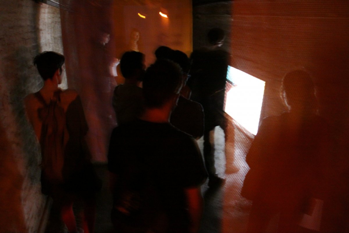 We, the frozen storm is the title of the new and site-specific installation conceived for the evocative spaces of the tunnels of the Pincio shelter, under the Montagnola Park. The title is inspired by Bildbeschreibung (Explosion of memory/description of an image) by Heiner Muller. For their first exhibition in Italy, Florenty and Türkowsky have composed a work made up of video projections, sounds, glows and shadows, marking an important first step in the research currently underway after the great project Through Somnambular Laws (2011) toward a new series of works.