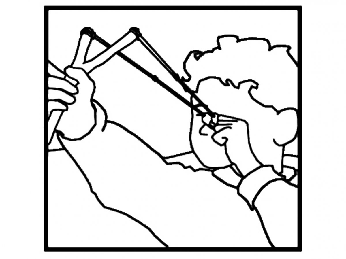 Un tiratore cerca di centrare con un colpo di fionda un microfono posizionato a distanza. L'impatto del colpo con il microfono è amplificato e diffuso ad alto volume da una cassa collocata vicino al tiratore. Il progetto cerca in questo modo di tradurre l'intensità del colpo e rendere manifesto il processo di azione-reazione che si instaura tra tiratore e microfono. La resa sonora del colpo (amplificazione esagerata e diffusione ravvicinata) permette al tiratore di fare esperienza della sensibilità del microfono, ovvero trascendere temporaneamente dal sé e mettersi nei panni dell'altro.