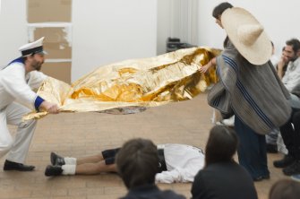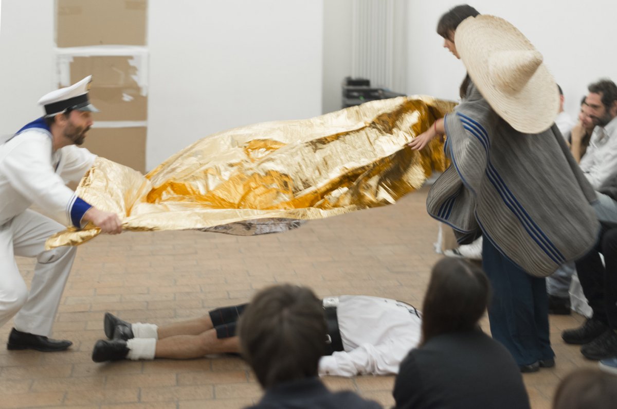 In scena si snoda la composizione di azioni che hanno subìto il trattamento rigoroso della mancanza a se stesse e per questo brillano di una sfumatura idiota e urgente che si ritrovano a contenere nonostante la dipendenza con il salto nel vuoto che il proprio paradosso continua a nutrire in un territorio incognito e alterato all’ombra di una presenza civile e con una libertà estetica. Ma i paradossi non esistono, e ogni cosa è ridicola se paragonata alla morte.