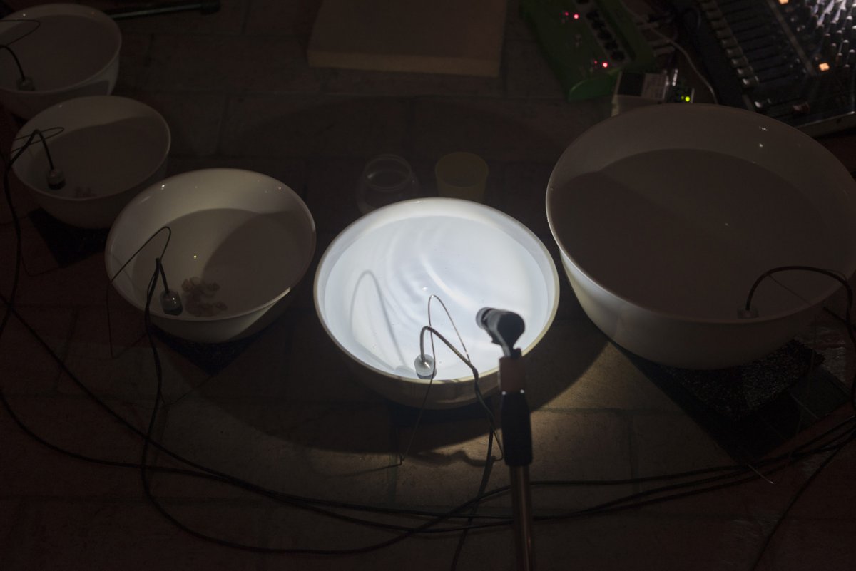 Le performance di Tomoko Sauvage vertono su undelicato equilibrio fra controllo e apertura al caso, alle percussioni accidentali di gocce, alle caratteristiche acustiche dello spazio e alle fragili tonalità create a partire da materiali fluidi ed effimeri, in un processo dicostante movimento e dissoluzione. L'artista lavora con ciotole e recipienti di porcellana di diverse dimensioni,riempiti d'acqua e amplificati con idrofoni. La sua ricerca nasce dall'acqua nelle sue diverse forme – gocce, ondee bolle – dalle risonanze dei contenitori, così come dal feedback audio, dando origine a tessiture di drones e overtones naturali.