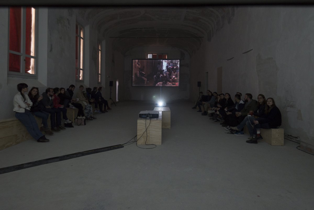 With Bergman in Uganda, Swedish artist Markus Öhrn introduces us to a new kind of folk storyteller that has emerged in recent years: veejays. These are people who work in makeshift cinema halls in slums and remote villages. Their art consists of directly translating movies – usually Hollywood blockbusters – for the local audience. Markus Öhrn came up with the idea of showing the films of Ingmar Bergman in this particular cultural context. With his back to the big screen, Öhrn filmed the narrators issuing words and explanations of the complex introspections on European culture and lifestyle that are so emblematic of Bergman’s work. How does one watch Persona (1966) in the shantytowns of Kampala today? Not without irony, Öhrn allows the European spectator to see how the African viewer looks at him. A confusing reversal that induces us to reflect on our own perspective.