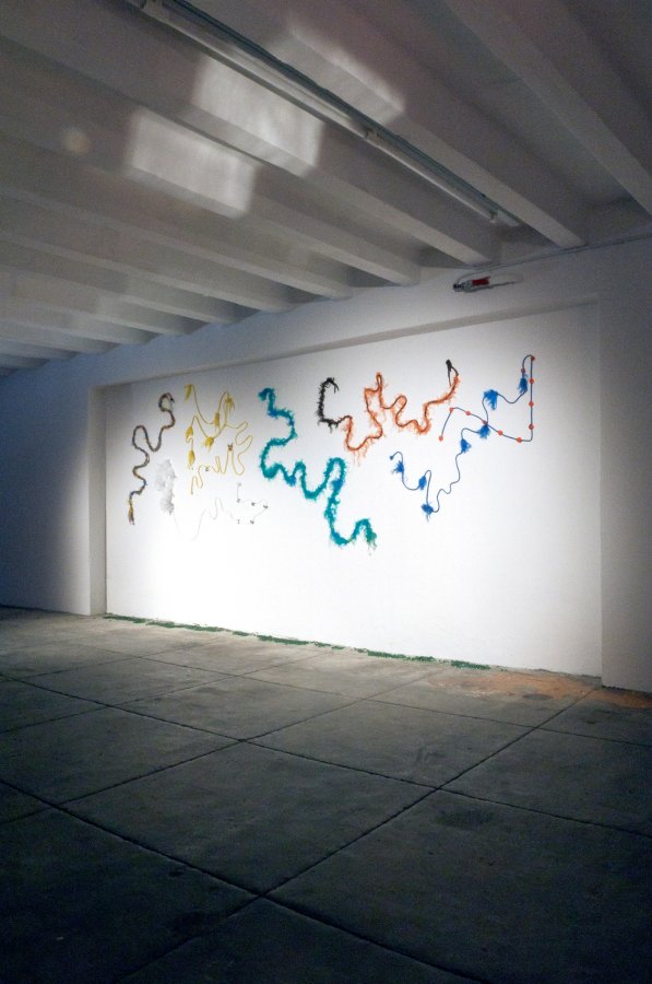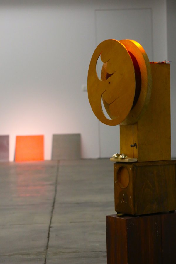 Soffio che Scotta é uno spiraglio su un numero non definito di storie, leggende e credenze nate con lo svilupparsi della saga Gancio Cielo. Avviato in forma di scrittura per un racconto sonoro, e pubblicato da Hundebiss Records su due vinili - il primo, uscito nel 2015 ed il secondo nel 2016 e presentato in occasione della mostra milanese -, Gancio Cielo è la costruzione di un universo fantastico che vive sul piano sonoro grazie all'utilizzo della voce come fonte primaria, intrecciata ad un  archivio di suoni dal sapore fantascientifico, prodotti in casa. Francesco Cavaliere guida il visitatore in spazi popolati da strani esseri che abitano un universo non definito: ibridi tra minerali, animalipiante, pianeti, scie, oggetti cosmici e fenomeni fisici e percettivi, presentati in un susseguirsi denso di eventi, una saga che annovera vicende legate a mitiche dinastie e a stravaganti singolaritàDopo aver trovato una sua prima realizzazione installativa a Bologna per Live Arts Week 2015, Soffio che Scotta rappresenta l'ultima ed accresciuta evoluzione di un percorso in cui i materiali di Gancio Cielo trovano manifestazione anche sul piano visivo, grazie ad una serie di oggetti, figure e forme animate da raggi di luce e motori elettrici.