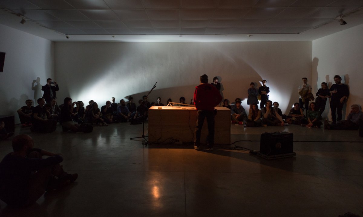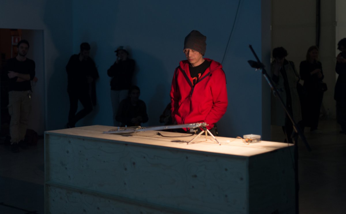 SexGodSex is a sound performance based on a handmade instrument: a self-built heavy beat machine made by Minoru Sato to create art works using physical phenomena. Usually starting from the mere observation of nature, which he turns it into artistic representation, Minoru explores sound as a physical vibration and the audio signal transmission system, using feedback and natural resonant frequencies.