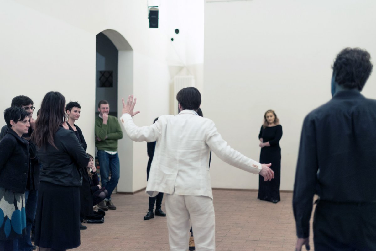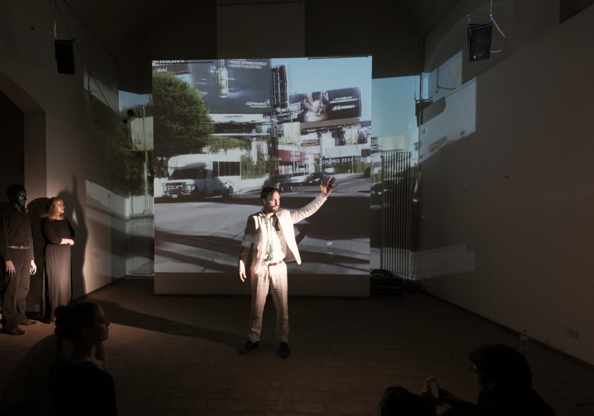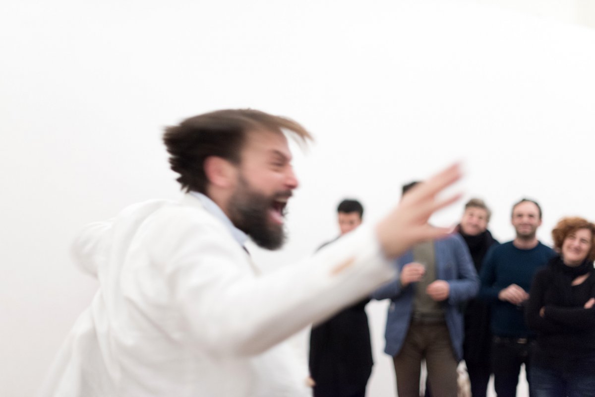 Inspired by the true story of Somerton Beach Mystery in 1948, Tamam Shud is conceived and designed for Raum in three languages -as many sets of the story- in a schizophrenic identity vortex worn by the same author. The performance is a post mortem investigation of the victim on his own assassination. In this dark and grotesque stand-up comedy the artist is accompanied in the investigations by two singers.