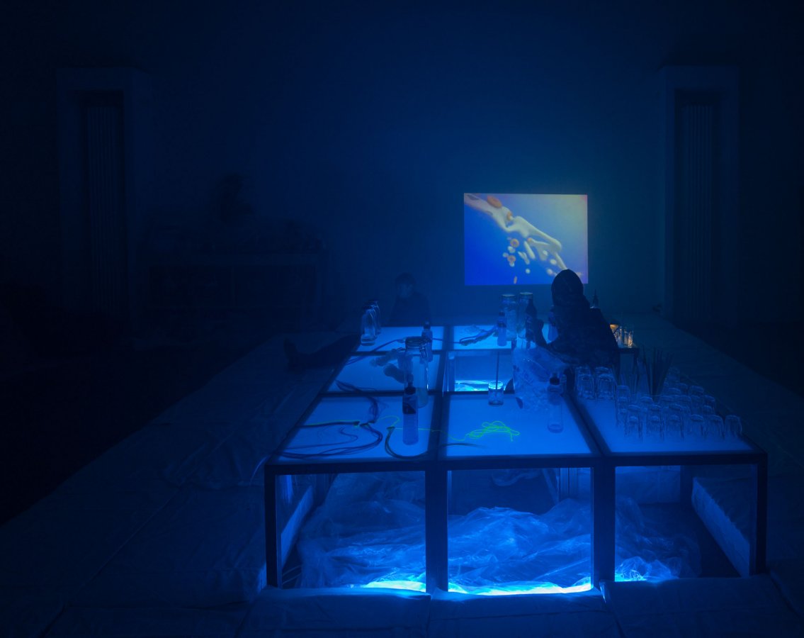 #wifispirit. Is it possible to manifest a subconscious place within a bounded reality? Asking herself this question, along with many others, Mara Oscar Cassiani tries for the first time to deal objectivelywith the synesthetic peculiarities of her work and her life. In an immersive environment objects and beats manifest themselves, as possible rituals of other dimensions. Starting from a millennial sensibility (a position which is intended to overcome both the post-internetand the post-digital), the artist analyzes her synesthetic perception as a XXI century practice that anchors color to the flow of events. The supports on which to manifest this shimmering sensitivity, subjective and creative, are mediums available to everyone: nail art, contact lenses and hair extensions indicate the moods on the bodies; the world of synthetic color, PNG -and not anymore JPEG-, the Pantone subjected to the subliminal communication of brands (including the hypnosis of wellness for a world permanently under stress) are the indicator needle between real and virtual, in an exercise of balancing multi-identity.