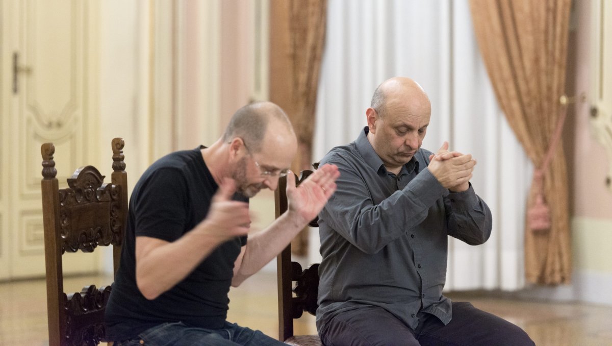 Composizione per mani e braccia, Both Sitting Duet è una delle prime esplorazioni del duo nella zona interstiziale tra musica e coreografia. Seduti uno accanto all’altro, Burrows e Fargion interpretano una composizione musicale per il corpo (silent music) basata su For John Cage di Morton Feldman. Ogni dettaglio, ogni fibra del corpo, ogni occhiata o sorriso, sino allo scricchiolio delle sedie, è essenziale per la performance. Nel suo dialogare tra ritmo, suono e gesto, è una coreografia che parte dalla vita di tutti i giorni dando rilievo anche all'insignificante.