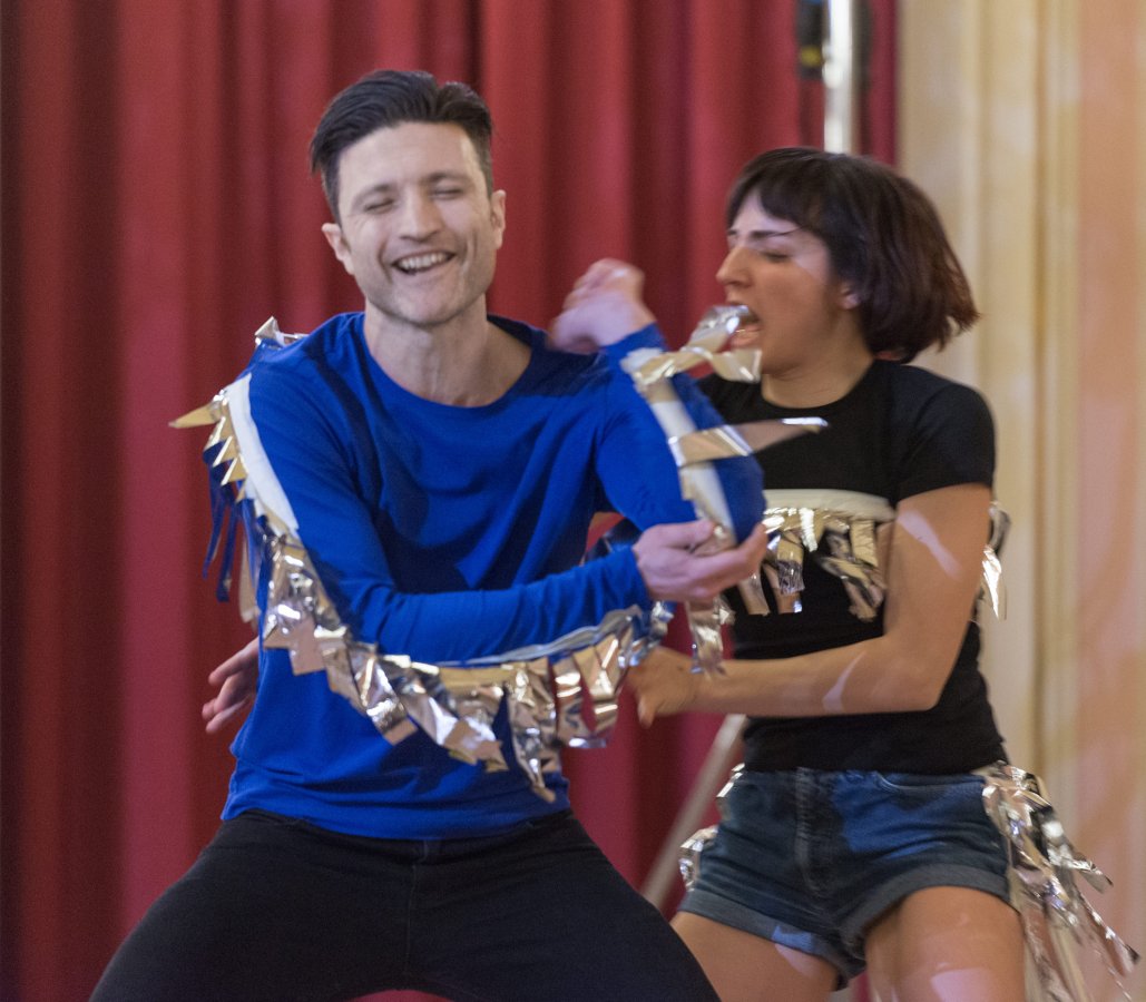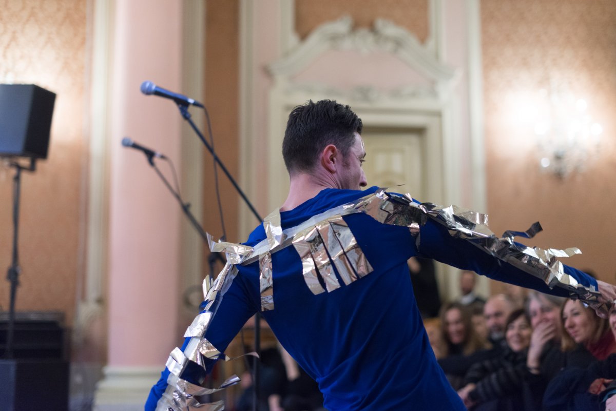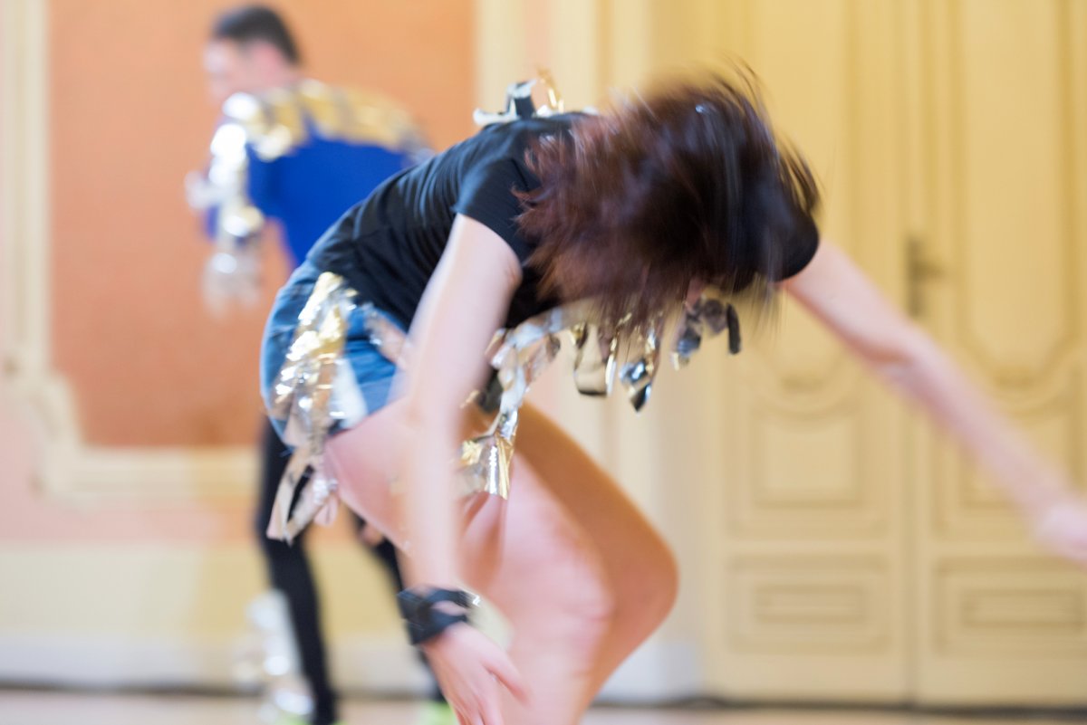 Unofficial Real Good Time - a tribute by Kinkaleri to Lou Reed - explores the possibilities of language and its deviations in a continuous space-time dynamic, investigating the form of the song. A performance immersed in the sound produced by the movement of the two performers on stage and processed by the live electronics of the Francesco Casciaro/Tempo Reale. In a poliphonic flow, the bodies and voices of the dancers retrace famous melodies, from trash pop to national anthems, finally summarized in a "na-na-na", emblematic trivialization of a cultural imagery and grotesque free fun.