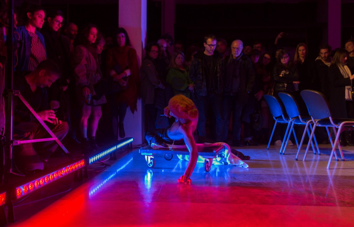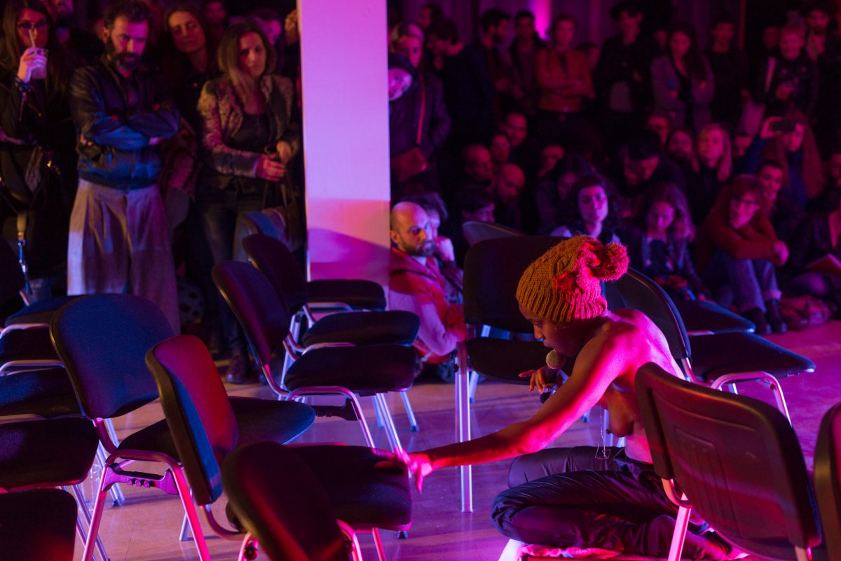 Palna Easy Francis is an open choreographic work, a shared bizarre journey with Dana Michel, whose style is inimitable. Unconventional and unique, she does things her own way, overwhelming us with her instinct and intuition. Her work can perhaps be best described by its influences: lucid cinematography, living sculpture, physical comedy, psychological excavation, deconstructed social commentary, the bulimic logic of Hip Hop, and child-like naïveté. Essentially, though, Michel holds all perceptions of the work to be just as valid and important as its intentions. Palna Easy Francis is a remix of her own expressive potentials and meanings. Michel develops an awkward and visceral body&sound language, putting herself out of balance, in search of solid ground, whilst also trying to restrict her exuberant physicality, cutting out the wildness. As a self-taught artist, she encourages her performances into places of emergency and vulnerability, allowing her to share richer and perhaps more honest findings. Exponential multiplicity of reactions is welcome.