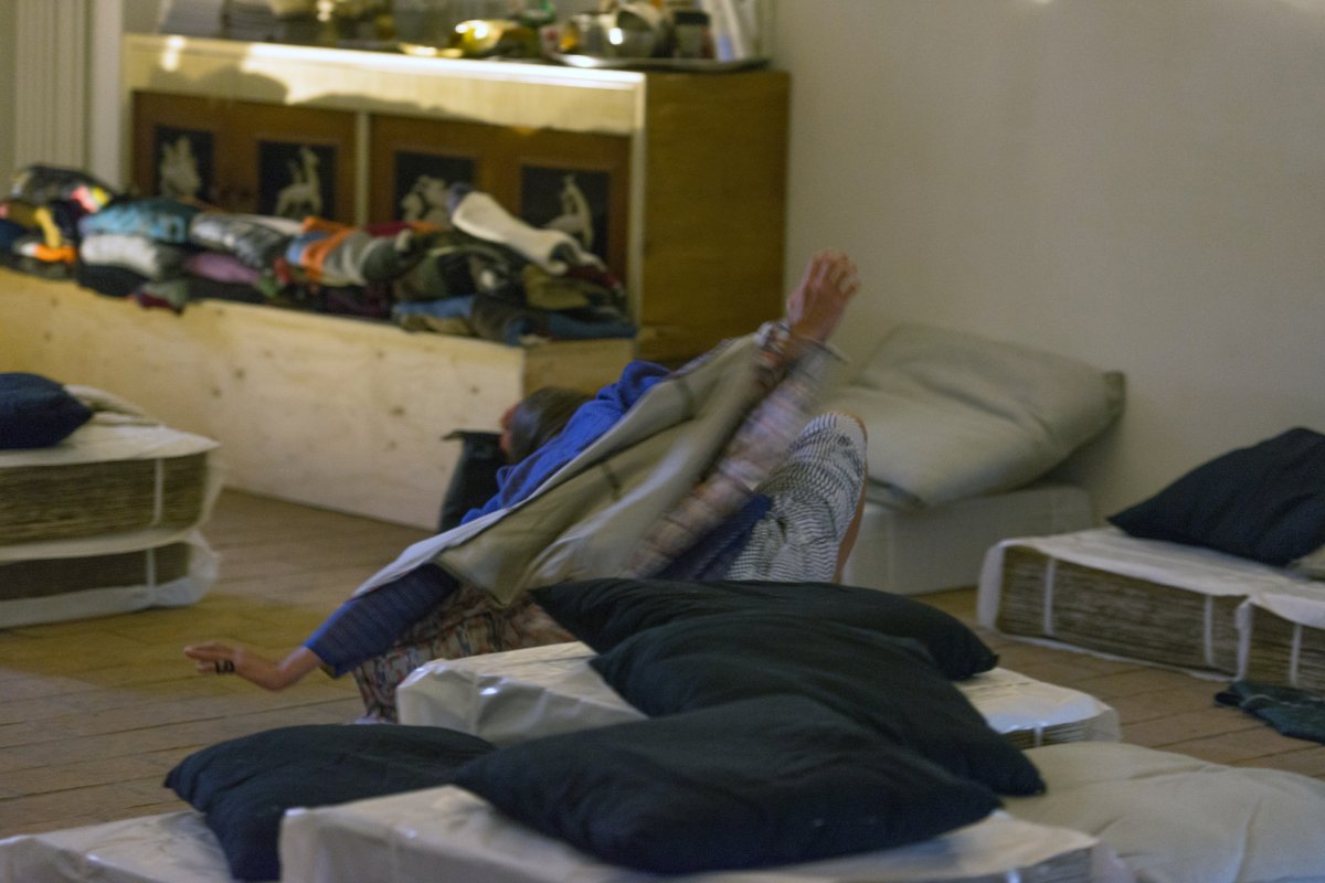 Musica per un giorno (Anno 2°) is a 24 hours performance that, in the artists' intentions, will be repeated once a year for 24 consecutive years. The performance at Raum marks the Year 2. This existential arithmetic arises from the encounter between Canedicoda and Roberta Mosca, and puts in motion a reflection that starts from Musica per un giorno registrata in un mese, a record of improvisation and field recordings 24 hours long realized by Canedicoda under the alias Ottaven in 2012, and produced by the label Second Sleep in digital format and as a box of 24 tapes. Musica per un giorno (Anno 2°) is neither a concert nor a dance performance; is rather an explorative opportunity to discover a range of perceptions, states, limitations and emotions, generated by the uninterrupted sharing of a place for the duration of one day. Movement, sound, space and ideas are understood as one, in the perspective of inviting the audience to experience an immersive, subtle, and relaxed experience. Musica per un giorno is also a limited-edition fanzine that is reprinted every year and enriched with new content on the project.