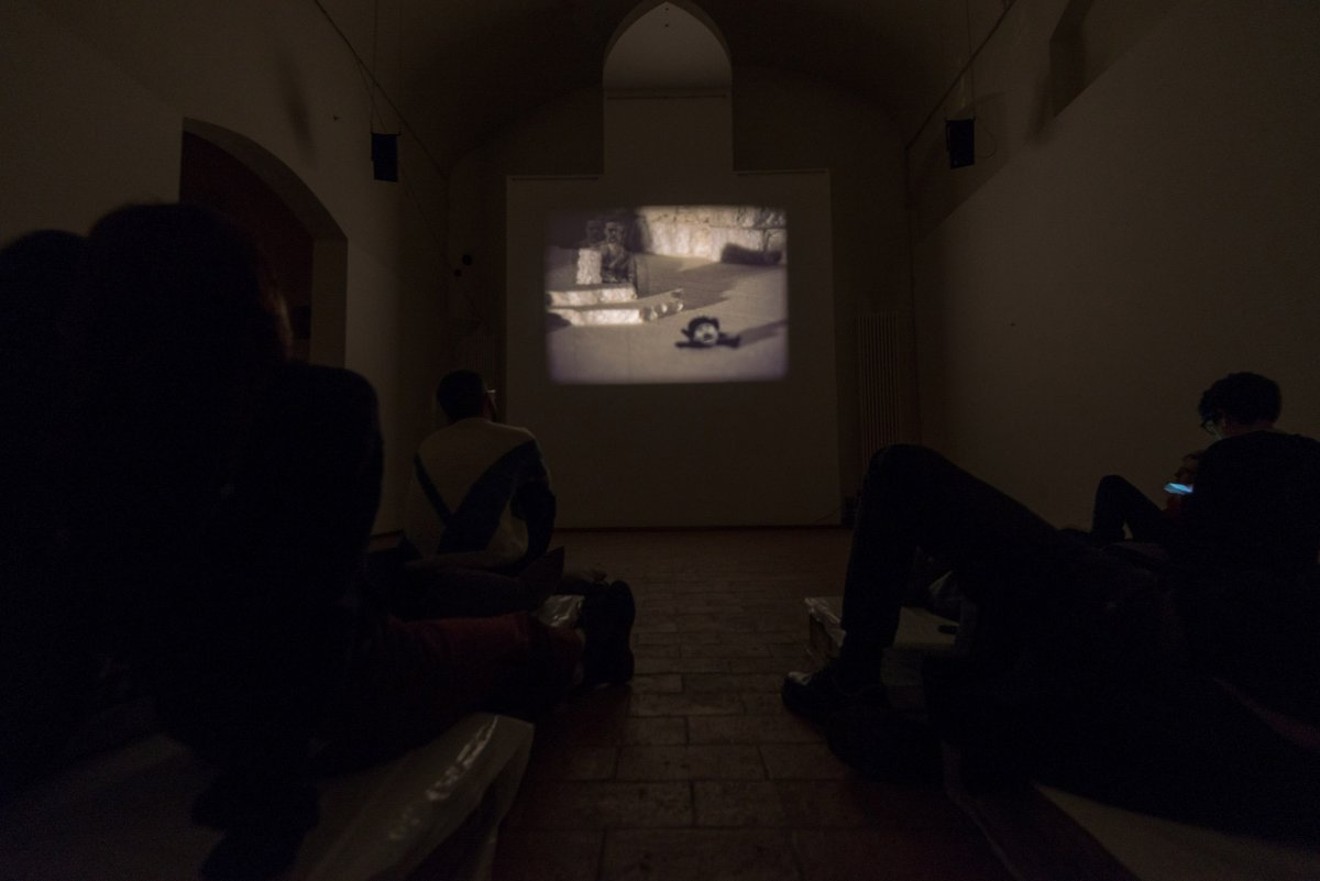 Shot and sound tracked in Florence in Andrea Granchi's studio in Piazza S. Spirito, Cosa succede in periferia? uses animation drawings, photographs, nativity scenes, magazines and photo novels, photos of paintings, and the Paesaggi per avventure (Landscapes for adventures) (1970-71), by Granchi himself, as a scenario for this strange surrealist 'theater'. In this film, which is one of his most famous works, Granchi employs an unprecedented animation technique, creating continuous mutations and surprises thanks to intrusions of all kinds, including, among other things, his Falsi quadri d’autore (False paintings) (1969-70), reproductions of paintings retouched or contaminated by the artist with anomalous presences of an ironic and desecrating nature. From the preparatory materials of this film, emulsion canvas cycles and a rare edition of four serigraphs entitled Isolamento (1972) have emerged.