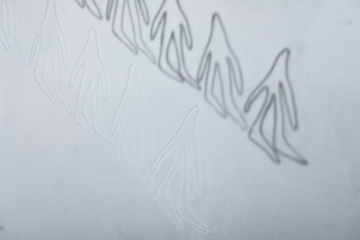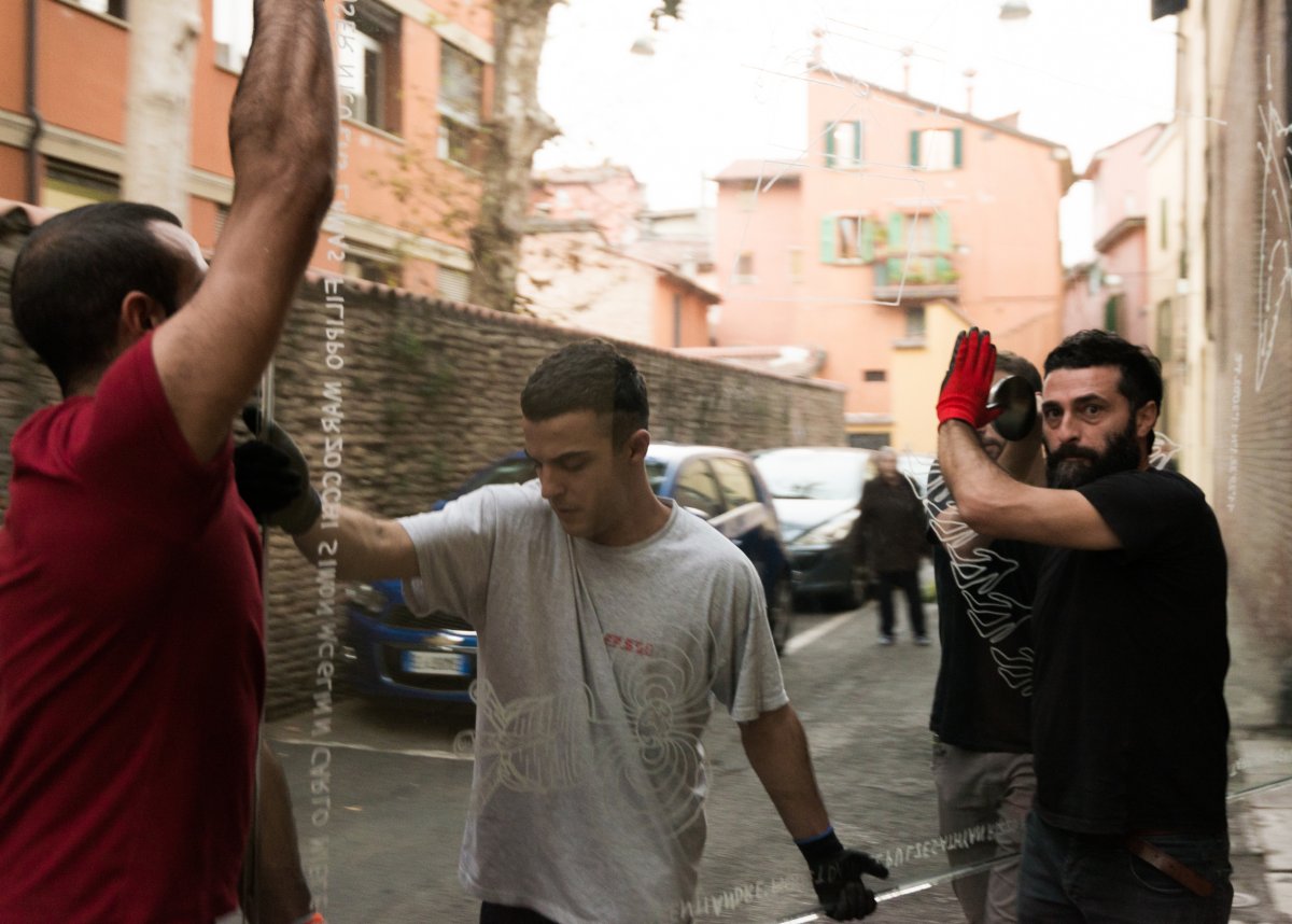 Dopo la collaborazione per la scorsa edizione di Live Arts Week con il progetto di 'disinstallazione' Ù, PALARAUM prosegue il rapporto di complicità tra due spazi d'arte dedicati alla sperimentazione radicale, forzando ulteriormente i limiti del dispositivo e dell'opera d'arte, con un piede nella realtà e uno nel regno del possibile: “PALARAUM ci appare come un ? rivolto ai posteri, un ? che pervade anche la sua genesi (…); potrebbe trattarsi della derivazione dell’unità-feudo TRIPLA attraverso una sua provincia temporanea, una nuvola attraversata da una corrente di polveri tetrafloruriche di silicio – tale è infatti la natura dei freghi fotosintetizzati su questo grande vetro destinato alla posterità, la cui degradazione naturale è prevista tra i 2 e i 3 milioni di anni.”