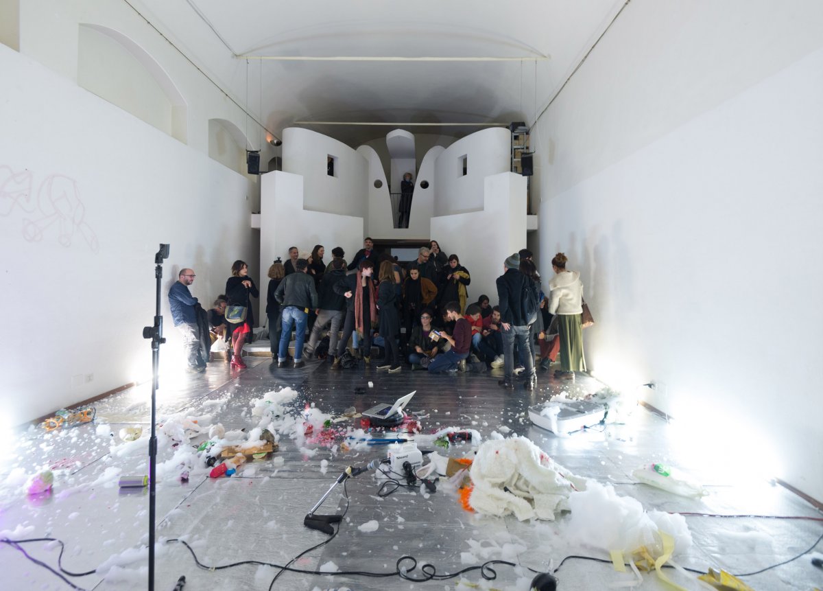 Willy Willy is the name of a strong wind that manifests itself in the Australian desert territories as an intense vortex of air that produces a bizarre phenomenon known as dust devils: cones of sand and dust that rise towards the sky. Using the imagery conjured up by this hypothetical atmospheric turbulence, Sigourney Weaver develops a scenario inhabited by exploded symbolism, delineating an action zone that abstracts, delocalizes and transforms the identities that cross it. Willy Willy is a performance palimpsest punctuated by experimentation with bodily dynamics and unknown postures, generated by the collision of bodies with media representations, forms, materials, experiences, objects and transcultural fetishes. In a space populated by an overabundance of signs, with the awareness that contemporaneity is composed of stratifications and consists in coexistence, Willy Willy plays with the existence of a pseudo animistic unconscious that circulates among the physical presences on scene: the short-circuited junctions generate the forms and expressions of a sign guerrilla. The evolution of the work at Raum sees the involvement in the design of the performative environment of Edoardo Ciaralli, an emerging visual artist who provides for the dissemination of totemic residues, fakes, crustings and vegetable residues.