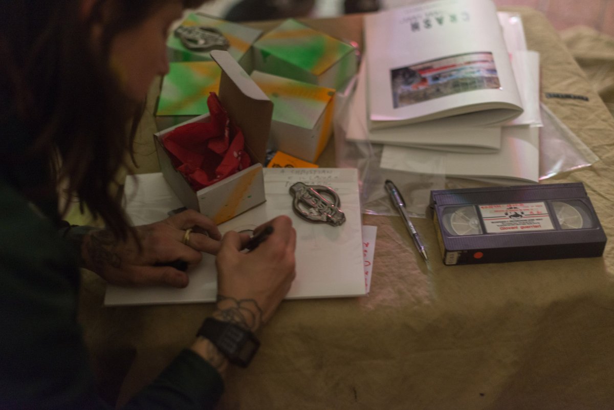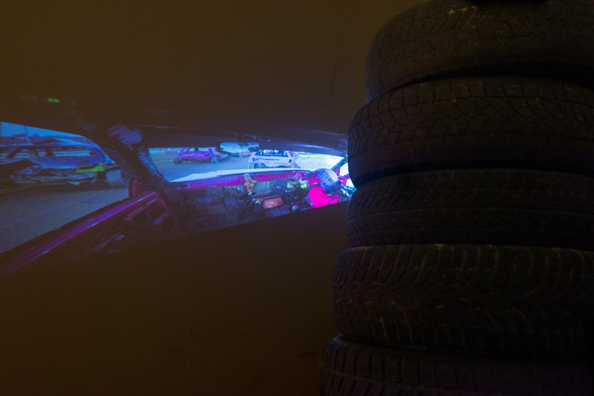 Acufene (Tinnitus) is a stratified environment inspired by the auditory disease constituted by invisible noises (whistles, buzzes, rustles, pulsations). Acufene is not a disease but an objective/subjective condition that provides us with the opportunity to immerse ourselves in the culture of Banger Racing and motorsports, on which Camilla Candida Donzella has been working for some time. Exotic and endotic shelter, Acufene takes us into a dream on the road, re-evoked through a context where the car, reduced to a skeleton and thus to mere functional essence, is no longer a status symbol but a means of freedom and emancipation. Dream, movement and fun are the lenses through which Camilla Candida Donzella views and investigates the British Banger Racing scene, made of girls, boys & families, where old scrap vehicles are pitted against one another. The potential for collision means there is an element of danger, but it also has circus-like and domestic qualities ("I started because my mother was competing"). Acufene mixes desires and references as if it came from the memory of a teenager with a fascination for USA '80 movies (The Outsiders, Over the Edge, Dogs in Space, River's Edge) where tribes of young warriors for the cause of uneasiness develop lifestyles that break the mould. Acufene is the display of an aesthetic that Camilla has photographed and documented over the last few years moving between the underground circuits. For the occasion a limited edition fanzine will be produced, accompanied by a vinyl with two motor-remixes by Palm Wine and by Dafne Boggeri.
