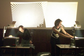 The project of Mikomikona was born from the idea of the exchangeability of sounds and images, and viceversa. This has brought them to develop an ad hoc software, that builds synthetic environments within which they are able to experiment a new syntax of digital media. The reseach of this group from Berlin, for the first time in Italy, is based on a long experience with different technology platforms (paleocinematographic, cut'n'mix, etc.) that they run with total virtuosity.