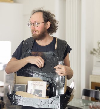 Adagio con Buccia is a visual report and collection of feedbacks born from the operating/performing dialogue that Canedicoda has developed during three years. Started in 2015 for Live Arts Week, then continuing at the FAR festival des arts vivents in Nyon, at Palazzo Durini/Bonotto Edition Showroom in Milan and in his studio, Adagio con buccia arises from an intuition on the performative potential of assembling fabrics around mindful bodies.